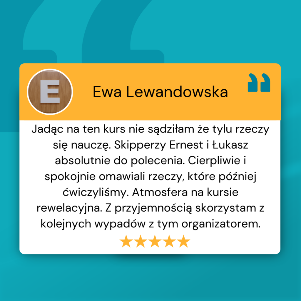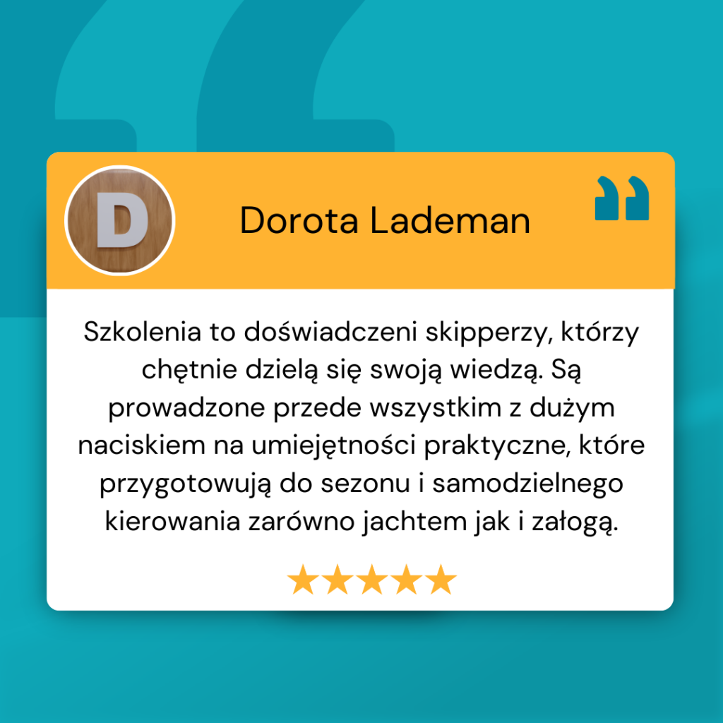 2. Szkolenie jest dla osób, które niedawno zrobiły uprawnienia, ale nadal czują pewne obawy i mają obawę przed pierwszym czarterem jachtu samodzielnie. Boją się brać odpowiedzialność za załogę.