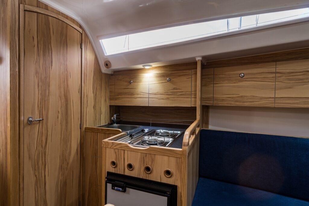 Antila 27 Premium to komfort, wygoda i bezpieczeństwo. W środku znajdziesz nowoczesną zabudowę. Antila 27 premium jest wyjątkowym połączeniem świetnych właściwości nautycznych (posiada relatywnie dużo żagla) i mieszkalnych (posiada dużą przestrzeń mieszkalną i 3 zamykane kabiny). Jednocześnie fakt, że ma nieco ponad osiem metrów długości pozwala na swobodne manewrowanie w portach. W marinach nie czujesz się dzięki temu jak gigant w krainie liliputów.
