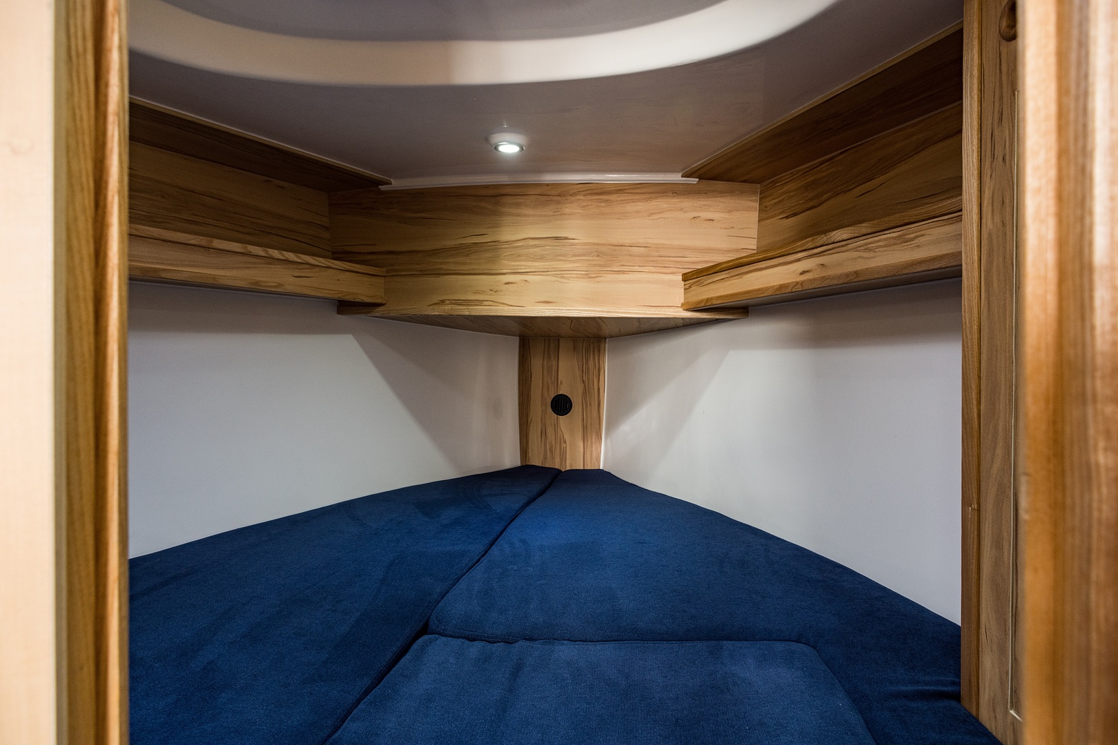 Wewnątrz: 3 zamykane, podwójne koje. Kambuz z lodówką i kuchenką, ogrzewanie, kabina WC.